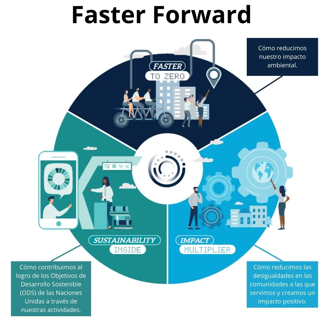 En Expo Manufactura nos comprometemos a integrar la sostenibilidad en todas nuestras acciones y estrategias diarias.Para lograr este objetivo, hemos implementado el programa Faster Forward, el cual se centra en tres pilares fundamentales: (Faster to Zero, Sustainability Inside e Impact Multiplier) con una variedad de actividades que abarcan nuestras operaciones comerciales, marcas, productos y nuestro impacto en la comunidad.